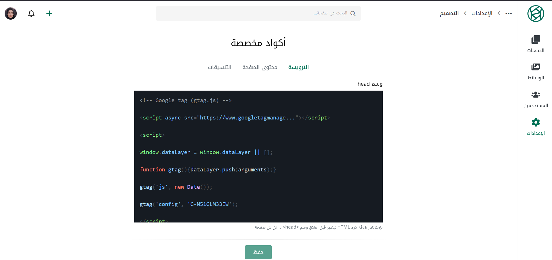 بالتأكيد يمكنك ربط موقعك مع حسابك في أدسنس من خلال إعدادات الأكواد المخصصة في لوحة التحكم لإضافة كود التتبع الأساسي.
