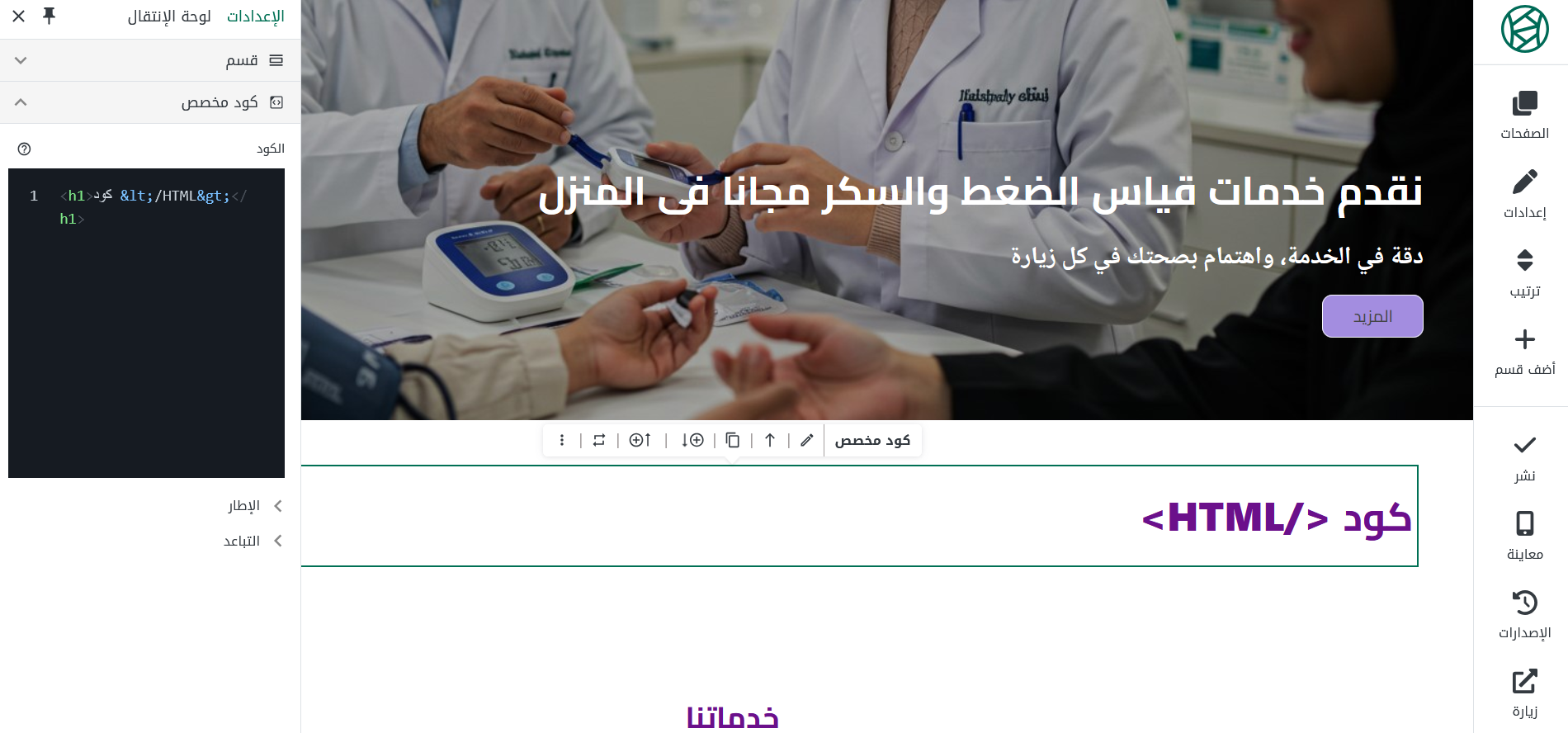 - أضف القسم في المكان المناسب داخل الصفحة مثل أعلى الصفحة، أو بين الأقسام، أو في الفوتر.